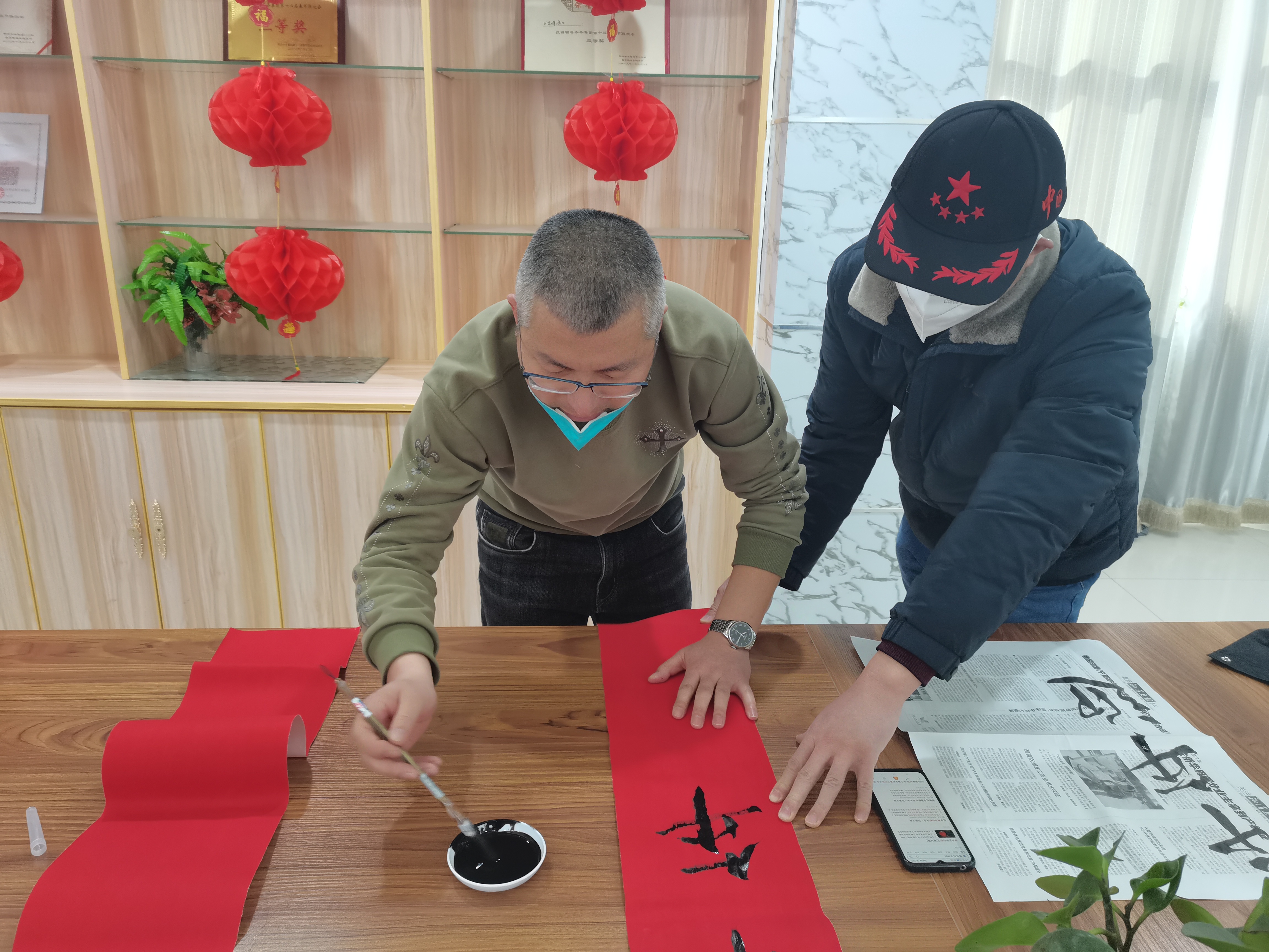寧夏賀蘭聯合水務公司開展“寫福賀新春”活動,大家集中在二樓會議室,桌上鋪上紅紙、攤開筆墨,擼起袖子,看著大家一個個筆走龍蛇、揮毫潑墨,創作出各種福字和對聯,整個會議室不時傳來一陣笑聲,評價聲,活動現場一派喜慶、祥和的景象。