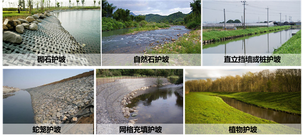 備注:生態駁岸一覽,圖片素材來源于網絡 1990-2002年間共有28000個河川治理項目采用了這一模式,在2002年實施的5500項河川治理工程中,約70%工程采用了多自然型河川的理念。然而通過對1730個工程的效果評價,仍存在植被恢復差、人工痕跡重、覆土流失嚴重、自然未恢復、魚類棲息少、外來物種多、環境不和諧、泥沙堆積多等問題。經過復盤,重新定義了“多自然河川”,即:以河川全體的自然節律為基礎,充分考慮當地居民的生活、歷史、文化和諧,以保護河川原有生物的棲息、繁殖環境并創建多樣的河川景觀為目的,實施河川的管理。這意味著日本河川的建設從個別區間的多自然化向整體的多自然化轉變,從獨立水利工程向與當地生活、歷史及文化相結合轉變,從水利工程建設向流域管理轉變。
