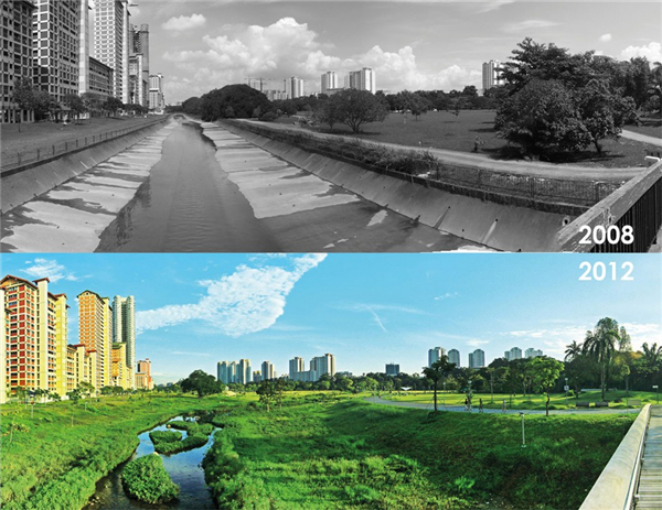 備注:國家級野生保護動物“黑水雞”,圖片來源于網絡 利水篇 人類社會的發展歷程中無不充斥著人與自然的辯證關系。理水治水最終離不開以人為本,生態服務的宗旨與原則。新加坡作為一個典型的水資源匱乏的國家,在水的利用與保護上,做出了巨大的努力, ABC水計劃(Active, Beautiful, Clean)就是在這樣的背景下誕生的。 該計劃旨在拉近人與水之間的關系,運用一個更好的雨水管理方式,盡可能把每滴雨水留住,將下水道、溝渠、水庫改造成為富有活力的、美麗的、清潔的小溪、河流與湖泊,與鄰近的土地成為一體,以創造出充滿活力的社區公共空間。 其主要采用自然凈化過程,包括沉淀、滲透與植物吸收等作用,主要工程元素包含沉淀池、植草溝、人工濕地、生物滯留溝、生物滯留池及生態工法駁岸等等,同時也包含多種綠色建筑、公共教育空間等配套措施。